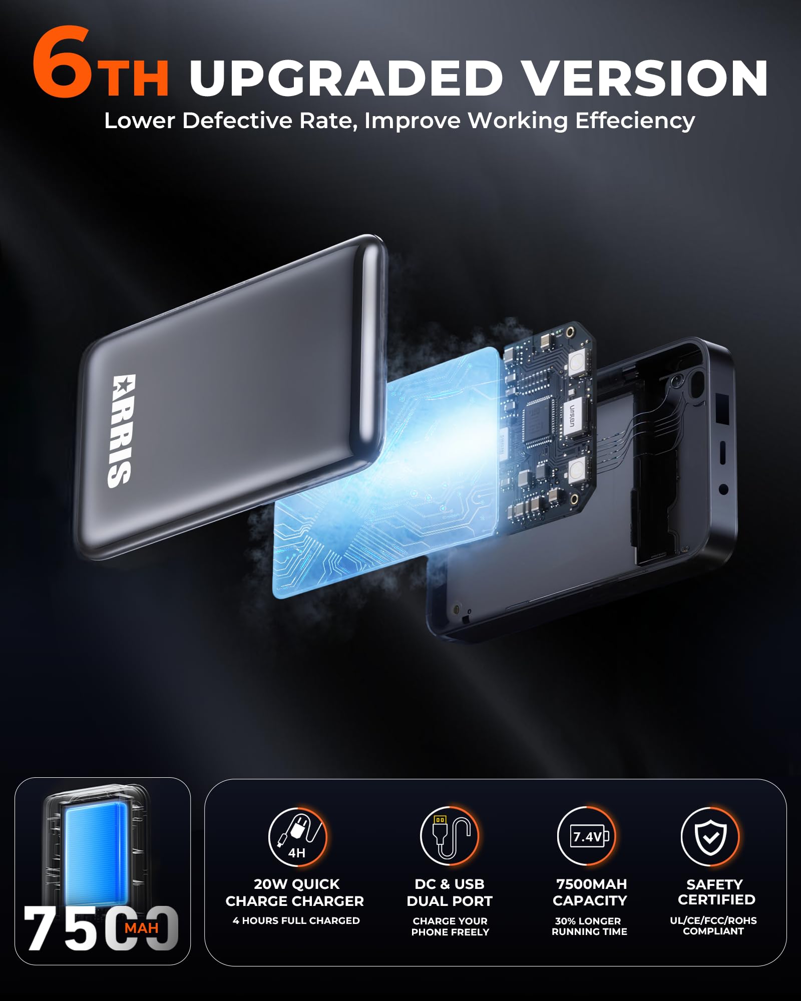 Thanks to the increased capacity of the 7.4V 7500mAh battery, which delivers performance equal to market-leading 3.7V 15000mAh power banks with higher efficiency.