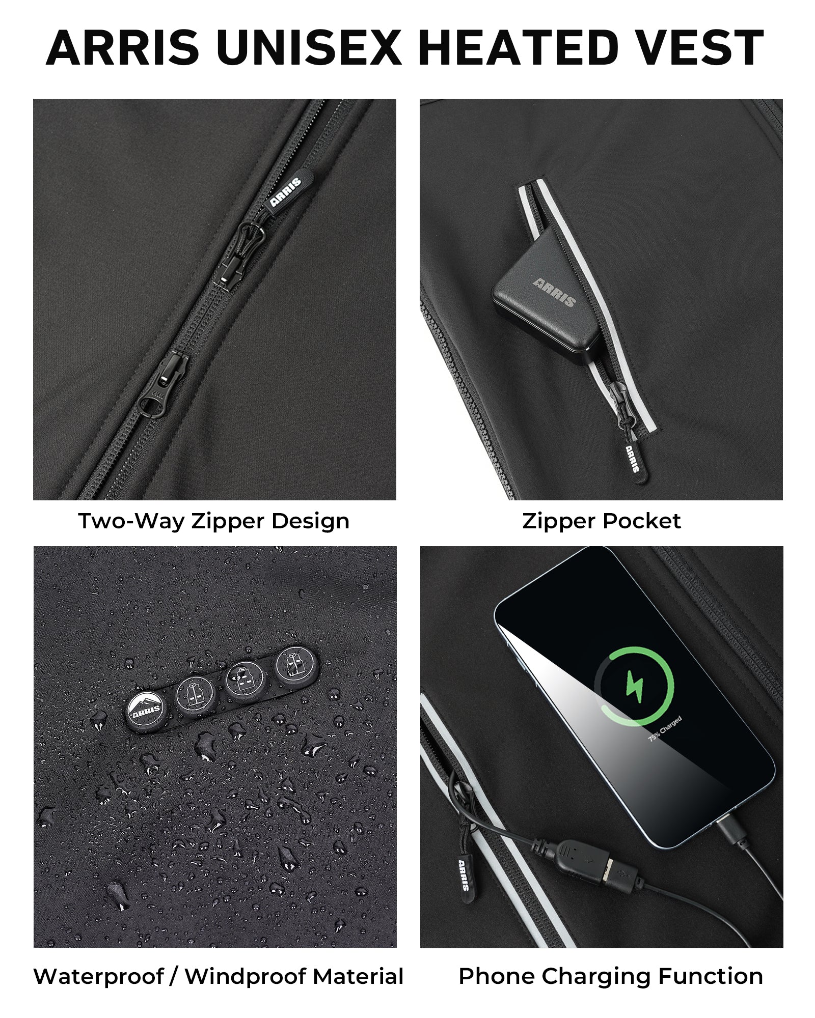 ARRIS Heated Vest for Golf 7.4V Electric Battery Powered Softshell Vest for Men